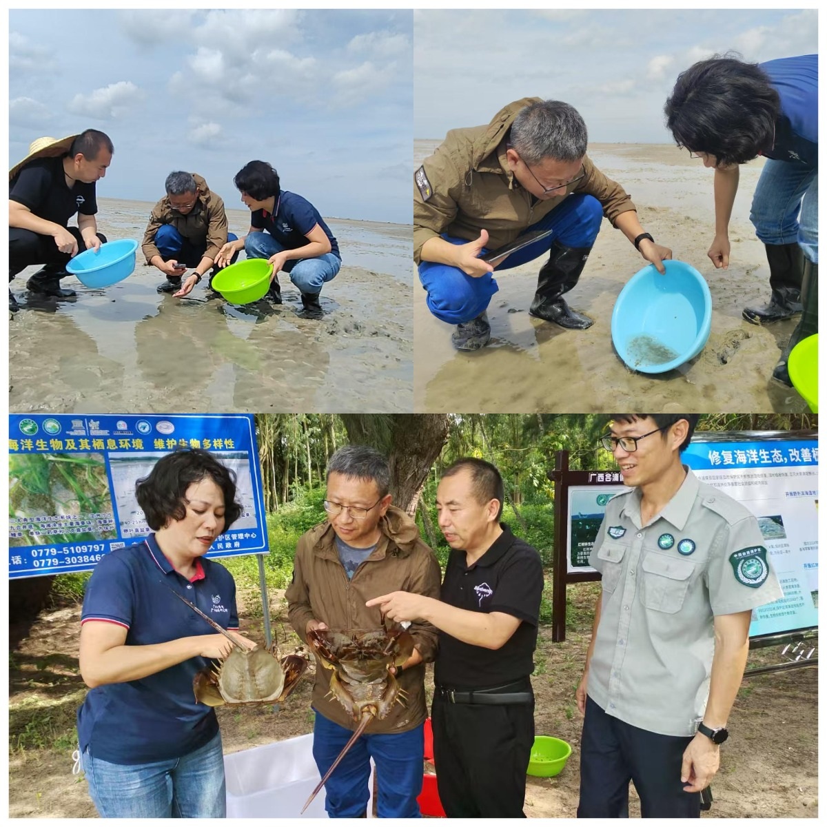 2025年6月20日,项目子课题四《中国鲎保育繁育与野化驯养技术》和子课题五《东亚江豚、黄唇鱼和中国鲎等珍稀濒危水生生物保护关键技术研究》在北海市合浦县沙田港举行中国鲎放流活动及中国鲎野生驯养生态养护基地揭牌仪式。
